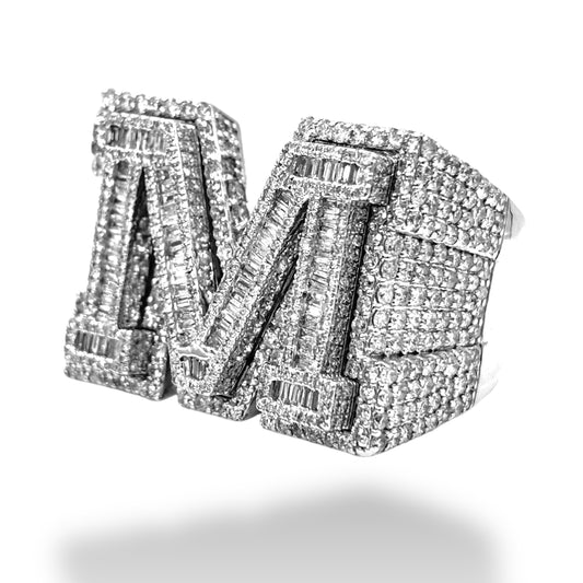 10KT WHITE GOLD “M” INITIAL RING 7.00 CT