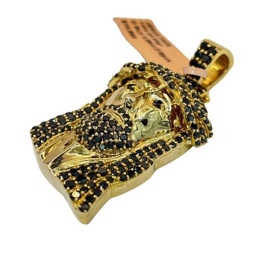 SOLID 14KT GOLD NATURAL BLACK DIAMOND MEDIUM JESUS HEAD PENDANT