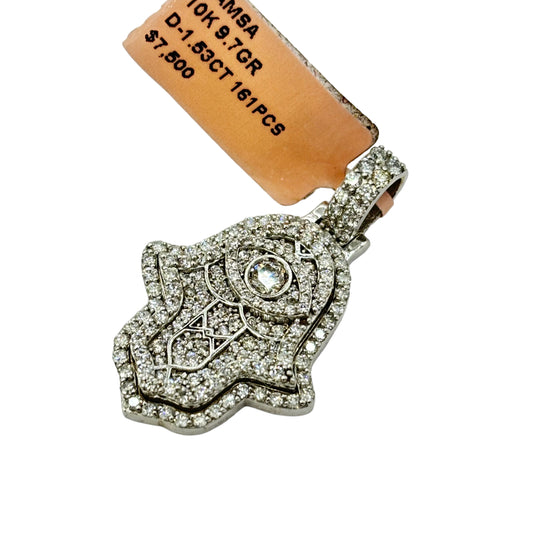 SOLID 10KT CENTER EYE HAMSA VVS-1 DIAMOND PENDANT
