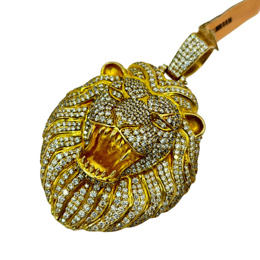 14KT 73.20G VVS-1 9.97CTW NATURAL DIAMOND BIG LION HEAD BUSTDOWN PENDANT