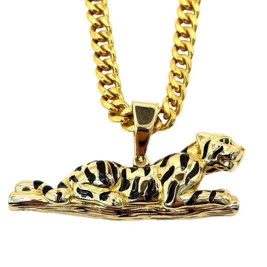 10KT PANTHER WITH BLACK ENAMEL | 0.02CTW CVD EMERALD | PENDANT