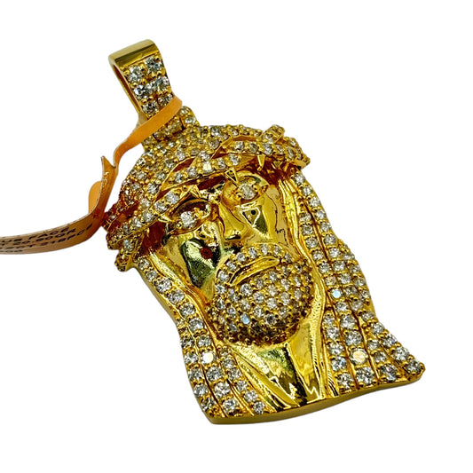 14KT SMALL/MEDIUM JESUS HEAD 3.12CTW VVS-1 NATURAL DIAMOND PENDANT