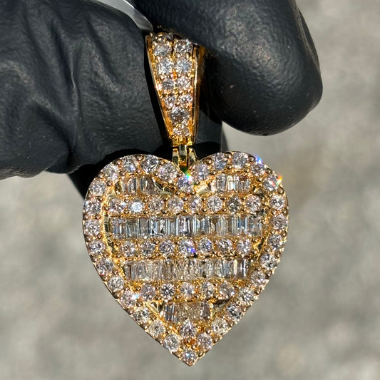 SOLID 14KT BAGUETTE DIAMOND HEART PENDANT