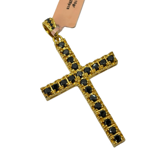 SOLID 14KT NATURAL BLACK DIAMOND CROSS PENDANT