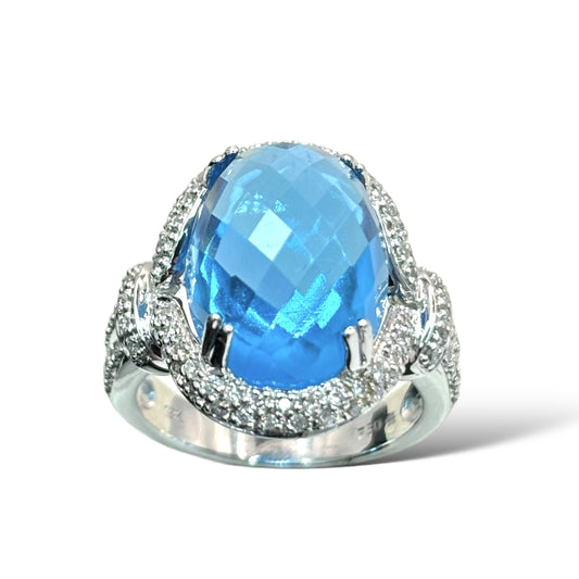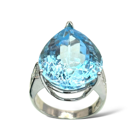 1/1 ESTATE 18KT WHITE GOLD 20.00 CTW NATURAL BLUE TOPAZ 1.00 CTW DIAMOND RING