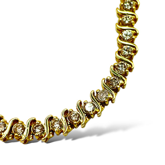 1/1 ESTATE 14KT YELLOW GOLD DIAMOND TENNIS BRACELET 4.25 CT