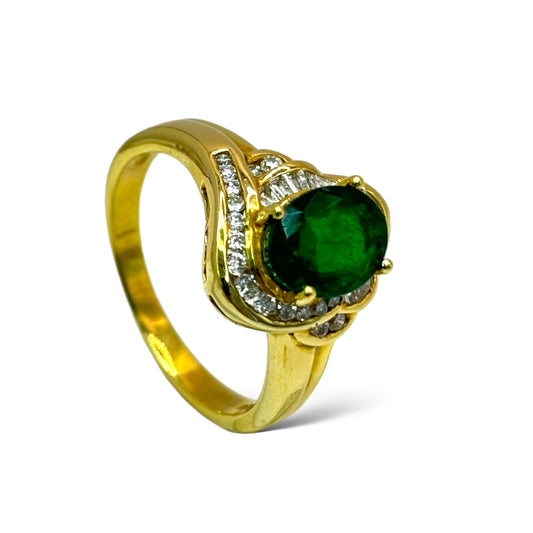 1/1 ESTATE 14KT YELLOW GOLD 1.80 CT EMERALD 1.00 CT DIAMOND RING