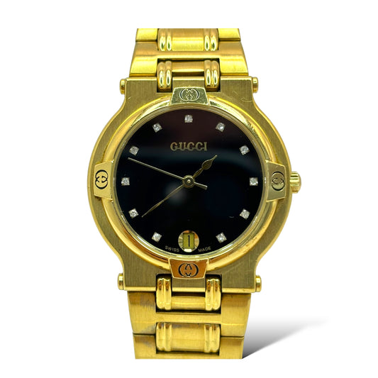 VINTAGE GUCCI 31MM GOLD PLATED DIAMOND DIAL WATCH