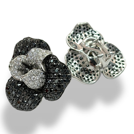 1/1 ESTATE 18KT WHITE GOLD FLOWER BLACK DIAMOND EARRINGS 7.00CT