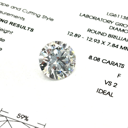 8.08CTW ROUND-CUT F-COLOR / VS-2 IGI CERTIFIED LAB-GROWN DIAMOND