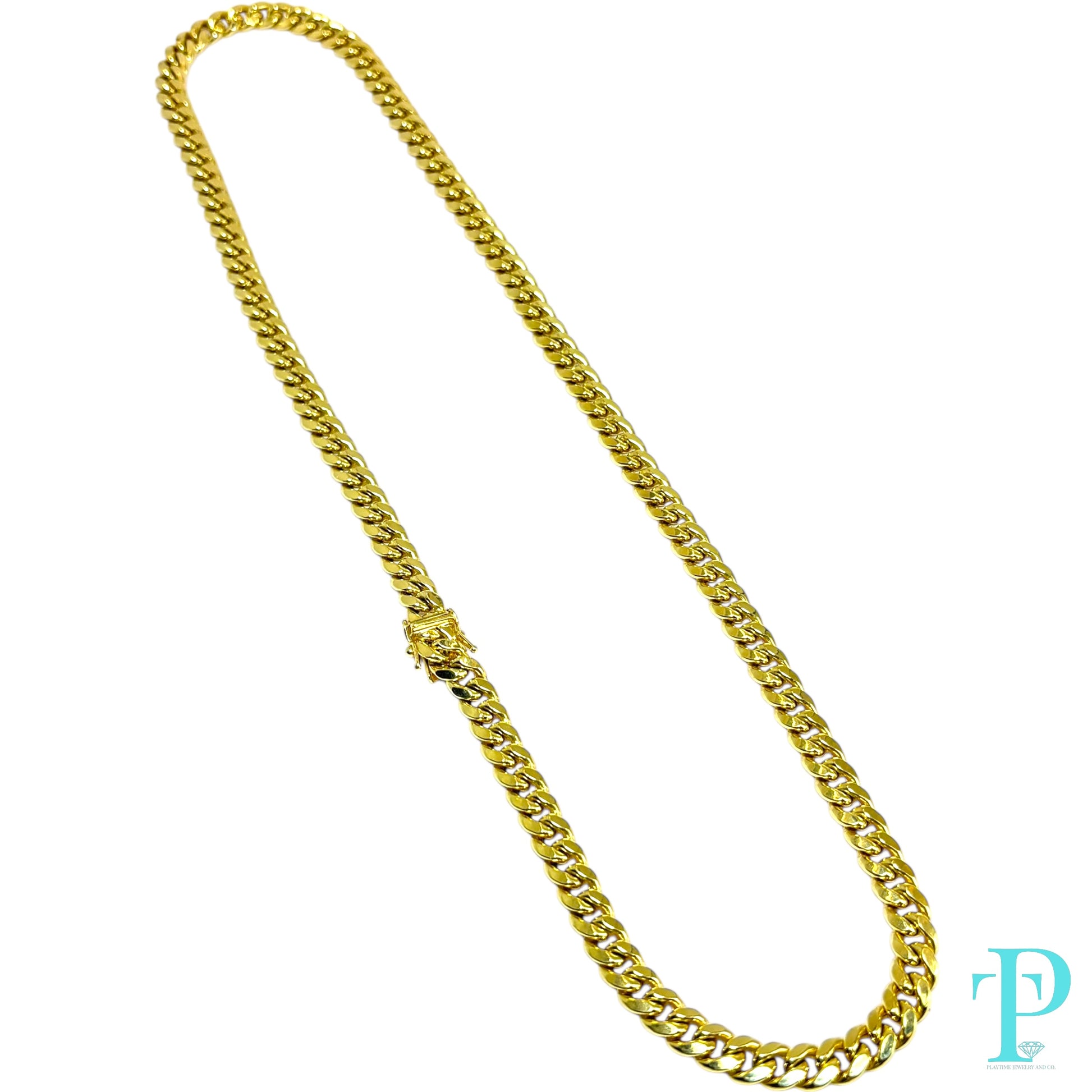 7.5MM 10KT Hollow Yellow Gold Miami Cuban Link Chain – 24”
